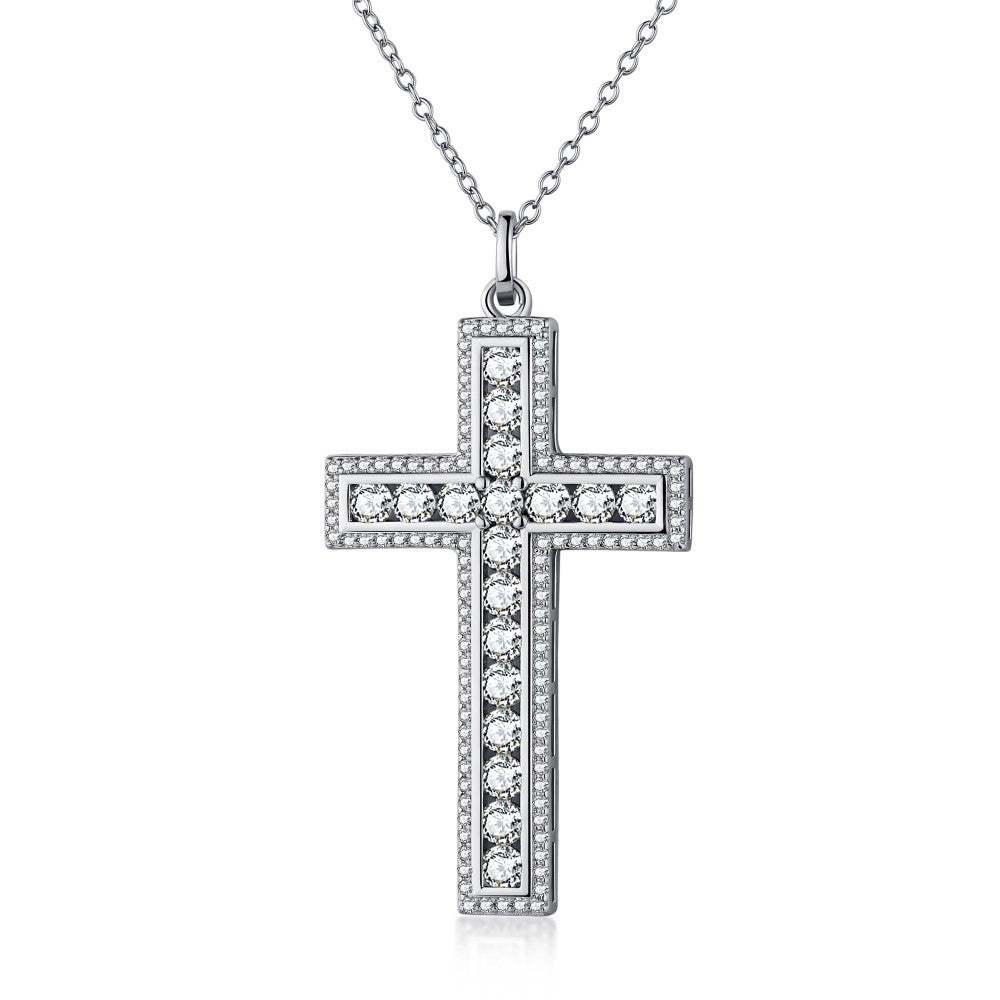 Immerse yourself in the timeless elegance of this cross necklace, where every detail enhances the beauty of the one who wears it. The pendant, in the shape of a silver cross, is beautifully adorned with sparkling stones that capture and refract light with every movement. Suspended from a fine chain, this delicate and refined design embodies a perfect harmony between simplicity and splendor. This cross necklace aims to be both modern and a bearer of an ancestral tradition, ensuring a bold style statement for all occasions. Whether worn to express personal faith or as a fashion element, this silver cross necklace stands out as a distinctive and meaningful choice.